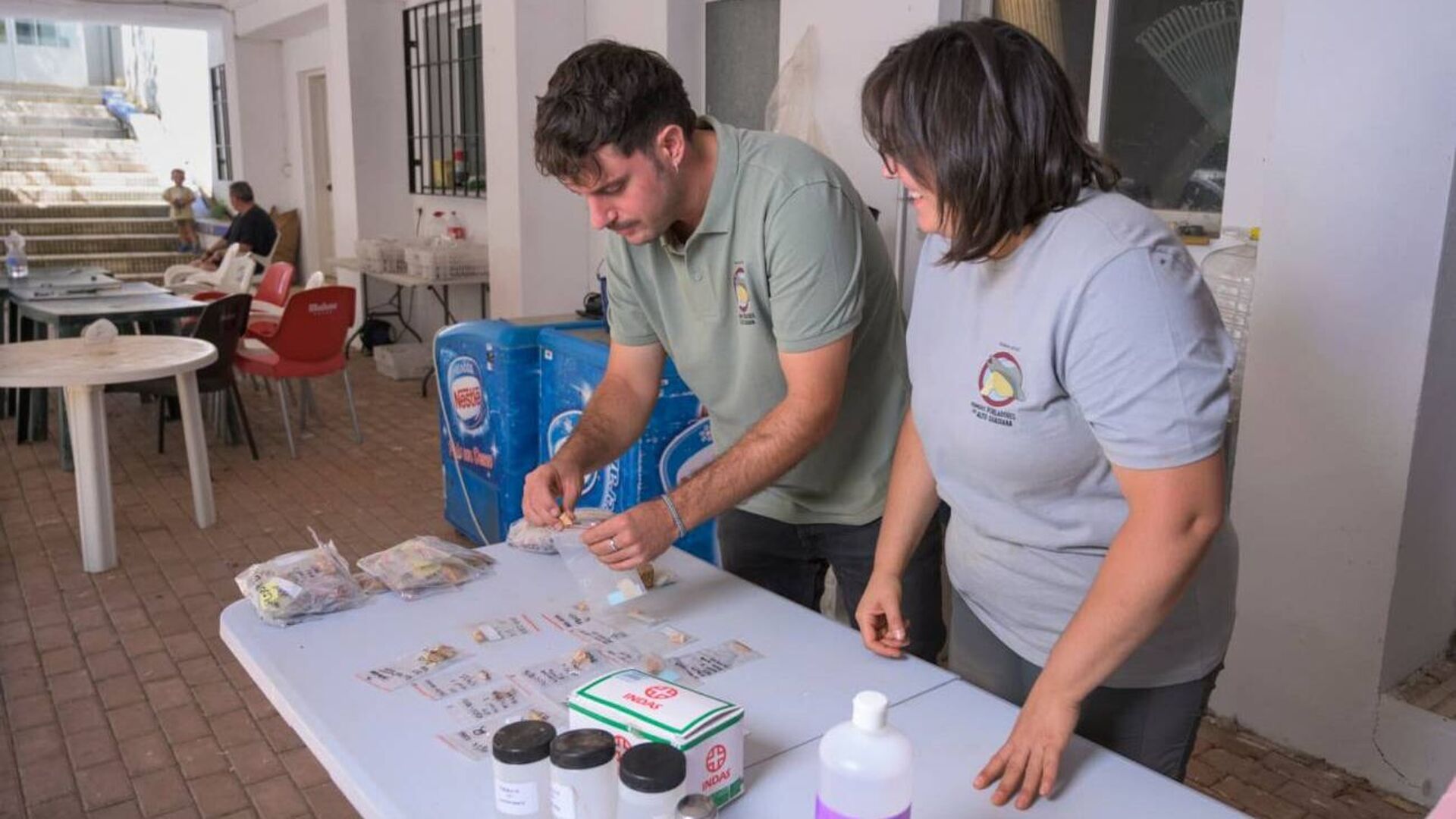 Los codirectores de la excavación, Sara Díaz Pérez y Carlos A. Palancar, revisan los hallazgos de este año en el laboratorio de campo. / Alejandro Muñoz